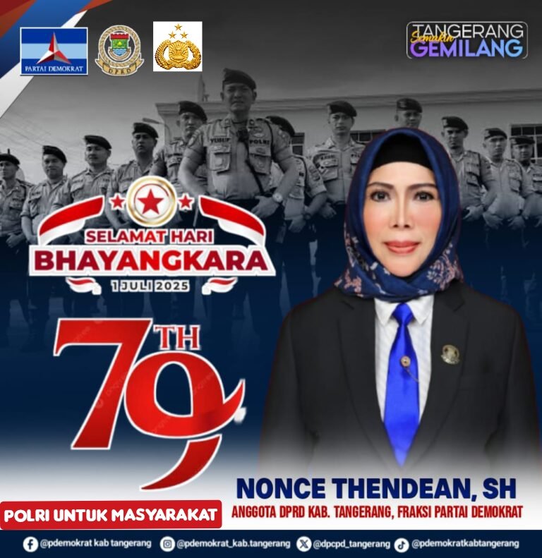ifaktanews.id – Tangerang,Anggota DPRD Kabupaten Tangerang, Nonce Thendean, SH, menyampaikan ucapan selamat Hari Bhayangkara ke-79 kepada seluruh jajaran Kepolisian Republik Indonesia, khususnya Polresta Tangerang.