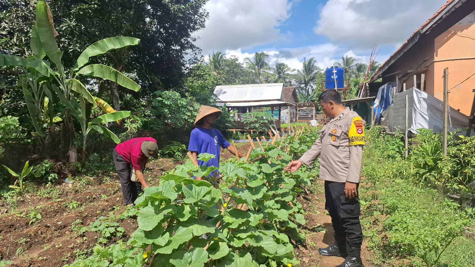 Bhabinkamtibmas Aiptu Iwan Budiman mengajak Bpk Kamil di Kp Tegal Kali baru RT 04/04 Kelurahan Balaraja Kecamatan Balaraja untuk memanfaatkan lahan yang Kosong untuk menanam berbagai aneka tanaman, sayuran maupun buah-buahan di Desa Binaan Wilayah Hukum Polsek Balaraja Polresta Tangerang. Selasa (22/07/2025).
