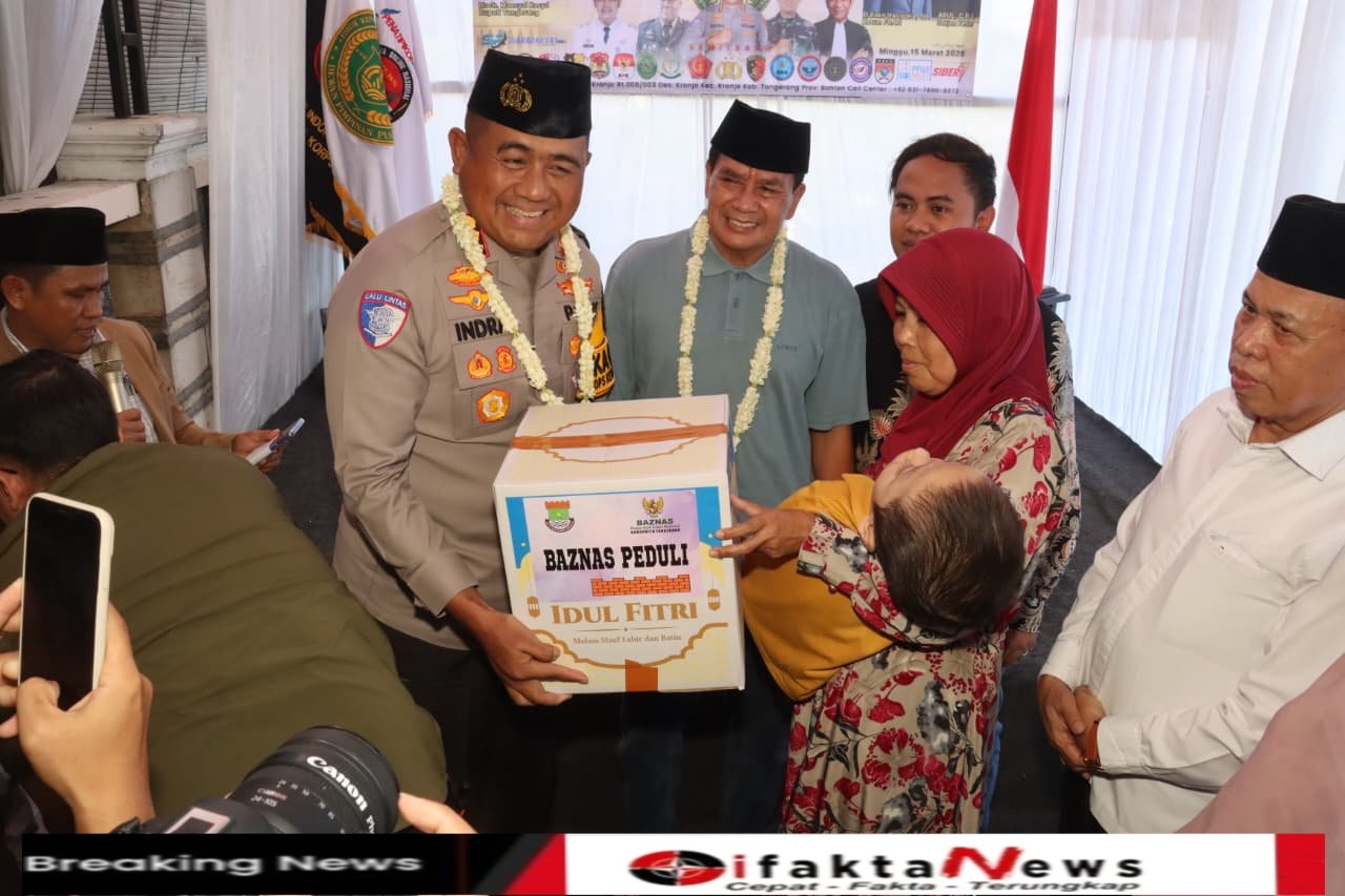 Ifaktanews.id – Tangerang, Bupati Tangerang Maesyal Rasyid dan Kapolresta Tangerang Kombes Pol Andi Muhammad Indra Waspada Amirullah menghadiri kegiatan santunan anak yatim dan jompo yang digelar Forum Reporter Jurnalis Republik Indonesia (FRJRI) Peduli Negeri di Kampung Kronjo, Kecamatan Kronjo, Kabupaten Tangerang, Minggu (15/3/2026).