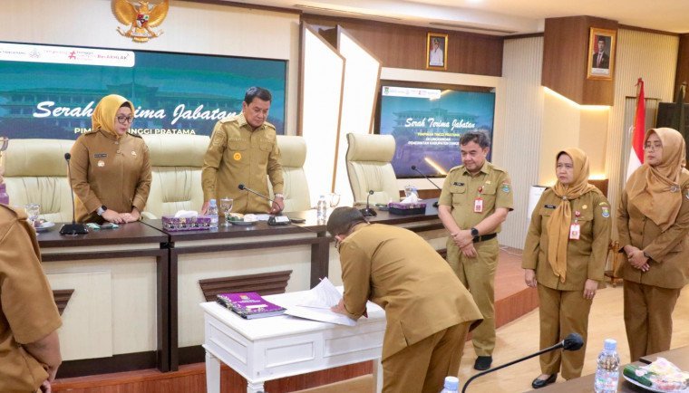 ifaktanews.id – Tangerang, –Bupati Tangerang, Moch. Maesyal Rasyid bersama Wakil Bupati Tangerang, Intan Nurul Hikmah menghadiri acara serah terima jabatan (Sertijab) pejabat pimpinan tinggi pratama (Eselon II) di lingkungan Pemerintah Kabupaten Tangerang. Acara tersebut digelar di Ruang Rapat Wareng, Gedung Sekretariat Daerah Kabupaten Tangerang, Selasa (15/7/25).
