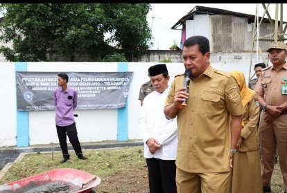 “Alhamdulillah hari ini kita melaksanakan peletakan batu pertama pembangunan sarana ibadah berupa musala. Mudah-mudahan musala ini menjadi tempat ibadah bagi siswa-siswi dan para guru, serta bisa cepat selesai pembangunannya,” ujar Bupati Maesyal Rasyid