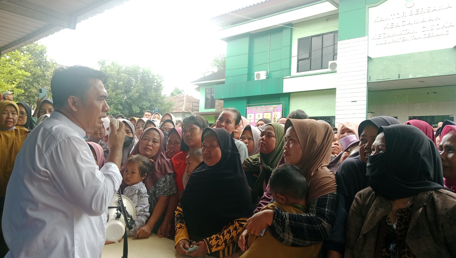 ifaktanews.id -Cisoka Tangerang, Warga Cisoka Membeludak Ambil antrian Pelaksanaan Gerakan Pangan Murah (GPM) di Kecamatan Cisoka Kabupaten Tangerang,