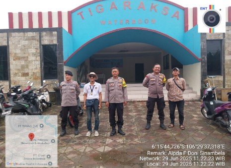ifaktanews.id – Tigaraksa, 29 Juni 2025, Untuk menjaga situasi keamanan dan ketertiban masyarakat (kamtibmas) selama hari libur, Polsek Tigaraksa melaksanakan giat rutin pemantauan di sejumlah tempat wisata, salah satunya di Kolam Renang Waterboom Tigaraksa, Kabupaten Tangerang.