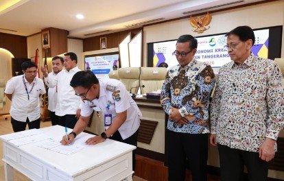 ifaktanews.id – Tangerang, Pemerintah Kabupaten (Pemkab) Tangerang bersama Universitas Prasetiya Mulya menandatangani Perjanjian Kerja Sama Kawasan Ekonomi Kreatif (PKS-KEK). Penandatanganan tersebut disaksikan langsung oleh Bupati Tangerang, Moch. Maesyal Rasyid dan Sekretaris Daerah Kab. Tangerang, Soma Atmaja di Ruang Rapat Wareng, Rabu (14/1/26)