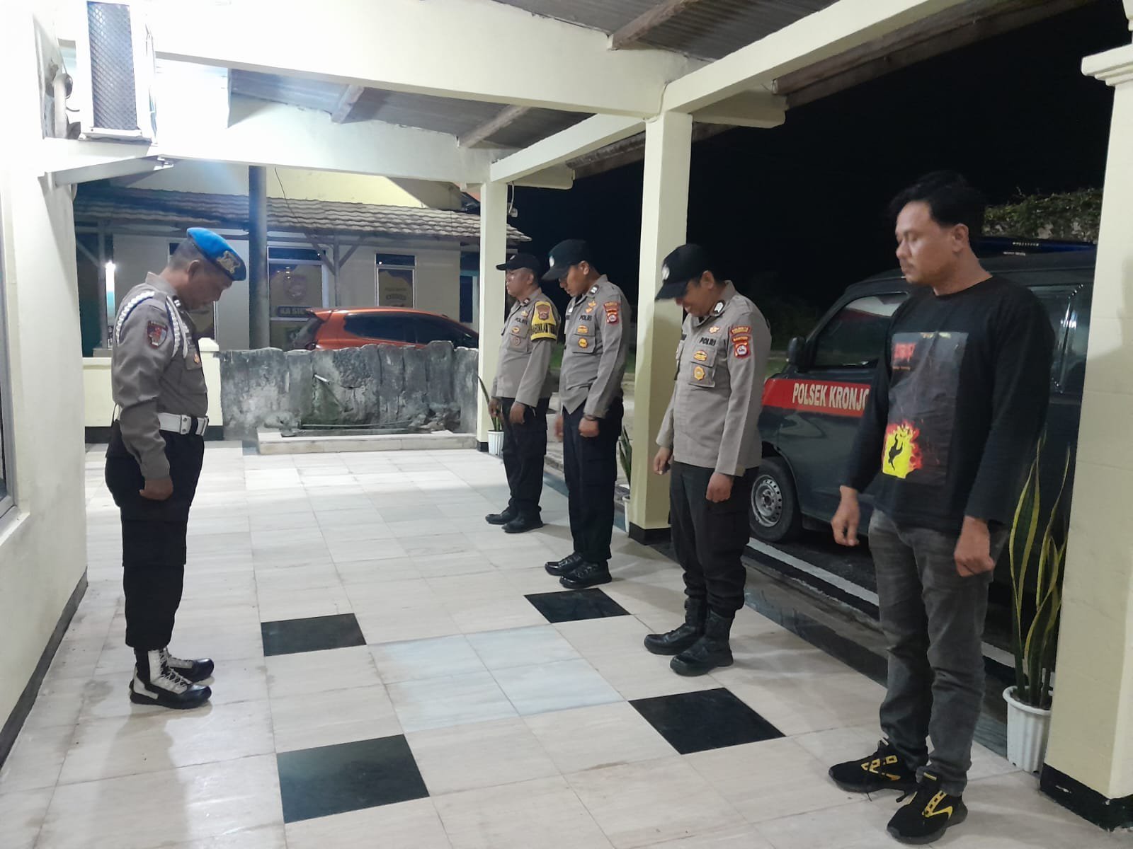 Apel malam ini dipimpin oleh Aiptu Zuhrial Arif, yang bertugas sebagai KANIT Propam sekaligus Pawas (Perwira Pengawas), dan diikuti oleh seluruh personel Polsek Kronjo yang sedang melaksanakan dinas malam.