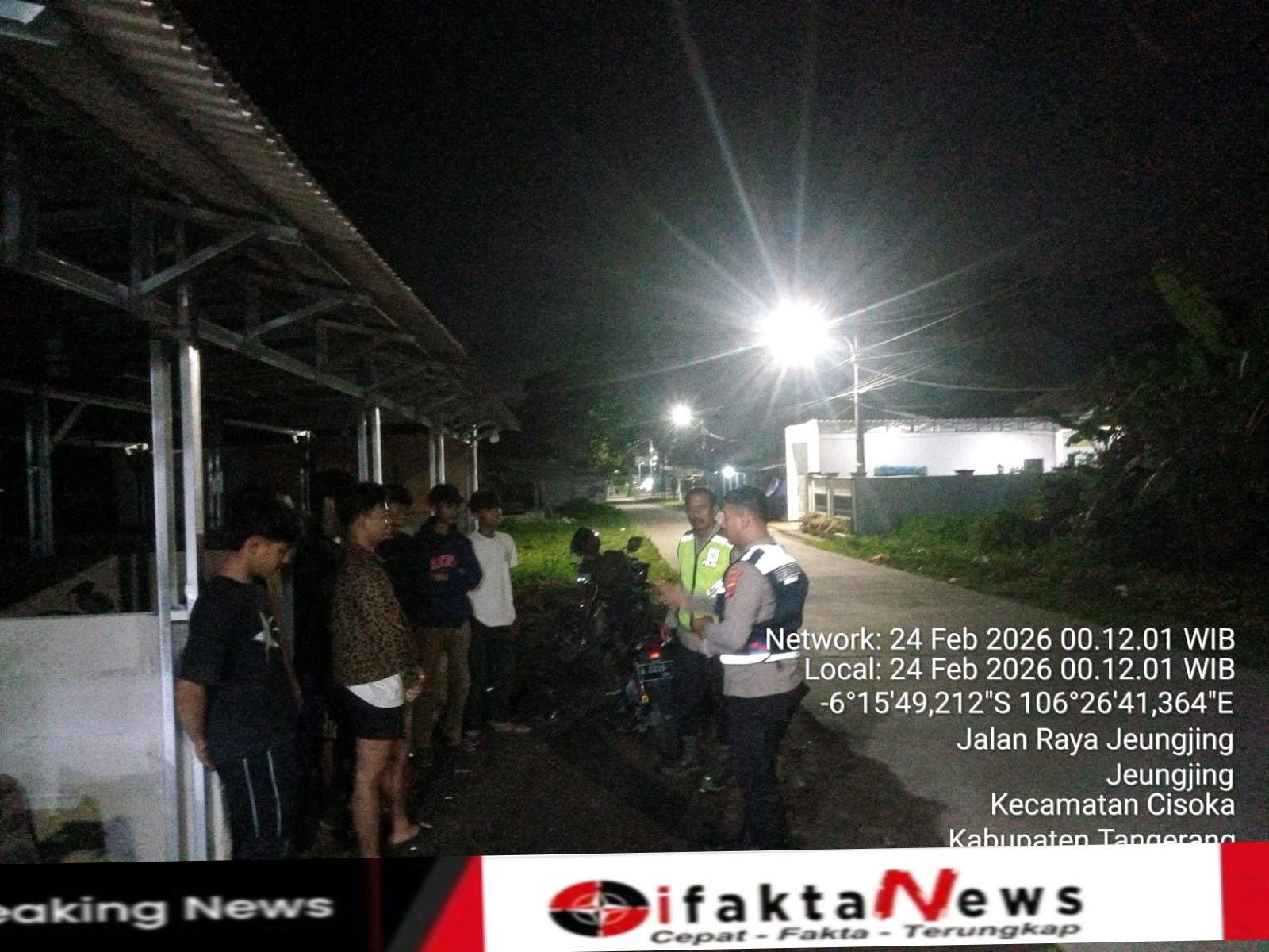 ifaktanews.id – Cisoka Tangerang, Respons cepat ditunjukkan jajaran Polsek Cisoka Polresta Tangerang dalam menjaga situasi keamanan dan ketertiban masyarakat. Pada Senin malam (24/2/2026), petugas mendatangi lokasi setelah menerima laporan warga terkait adanya sekelompok anak muda yang berada di wilayah Desa Jungjang, Kecamatan Cisoka, Kabupaten Tangerang, Banten.